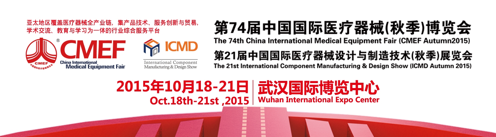 | 發(fā)布時(shí)間:2015-10-16 作者:益聯(lián) 來源:益聯(lián)醫(yī)學(xué)       醫(yī)療器械界萬眾矚目的第74屆中國(guó)國(guó)際醫(yī)療器械博覽會(huì)-2015CMEF武漢秋季醫(yī)療器械展會(huì),將于2015年10月18-21日在武漢國(guó)際博覽中心舉辦。屆時(shí)有來自20多個(gè)國(guó)家的2600余家醫(yī)療器械生產(chǎn)企業(yè)和超過100多個(gè)國(guó)家和地區(qū)的150000人次的政府機(jī)構(gòu)采購(gòu)、醫(yī)院買家和經(jīng)銷商匯聚CMEF交易、交流匯聚于此,場(chǎng)面盛大壯觀,值得期待。