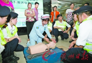 廣東成立應急救護培訓基地 首期擬向1500人普及自救互救技能 廣州日報訊 (記者何雪華 通訊員宋忠雷、朱璐詩、高龍)在城市,救護車的平均到達時間為10分鐘,城郊、鄉鎮及自然村,需要的時間更長,而人一旦無呼吸、無脈搏,大腦血液里的氧氣只能維持4分鐘(挽救生命的“黃金時間”),如果不能及時恢復心臟跳動,使新鮮血液供輸到大腦,人的腦細胞就會逐個死亡,每拖延1分鐘,腦細胞死亡率就增加7%~10%。