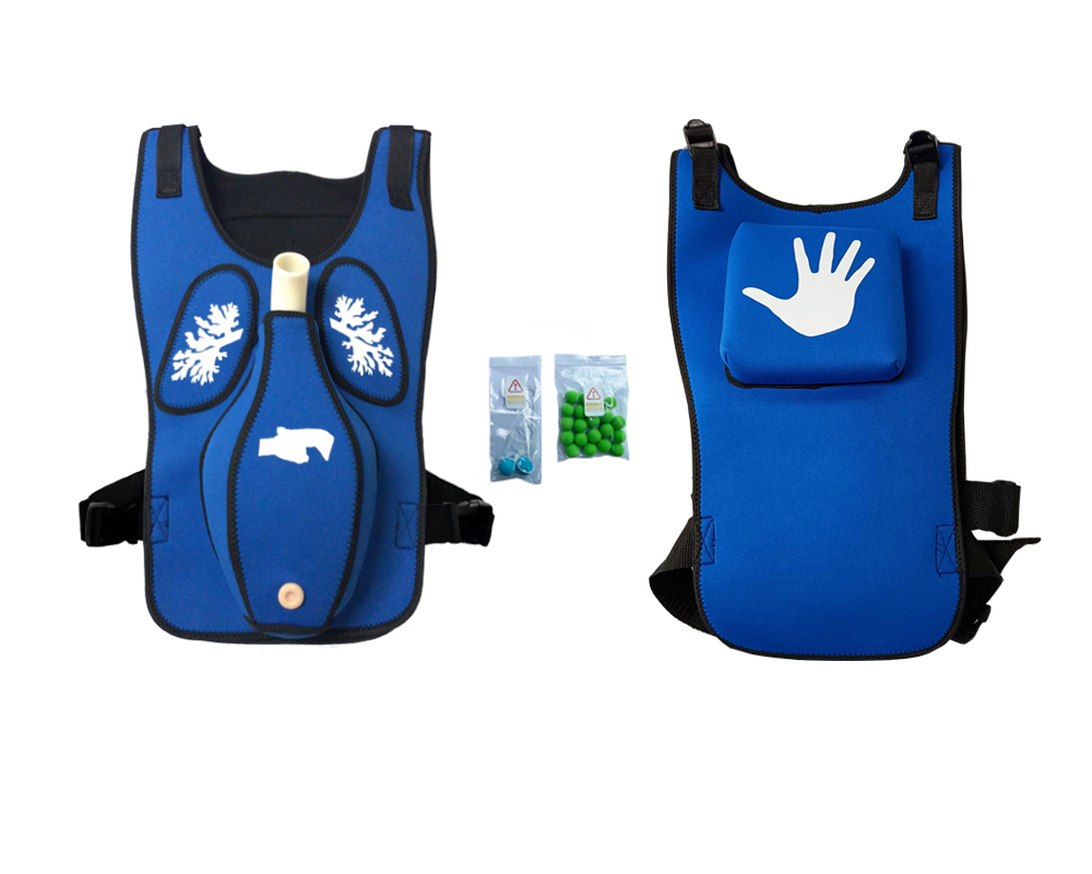 救援培訓專用窒息梗塞急救實訓穿戴馬甲,可有效避免因窒息急救不及時導致生命安全受到傷害。防窒息急救教育和實訓的時候,穿戴在學員身上,針對異物造成的呼吸氣道堵塞狀況時,練習腹部按壓(即海姆立克手法),做出正確步驟處理,擠出堵塞氣道異物(異物塞).直觀的教學模式給學員帶來自信和應用實效。模擬者可采用站姿、坐姿、用教具或借助柜臺、桌椅,實習體驗窒息自救、急救、達到救人一命的教學目的。