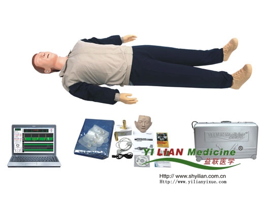 心肺復蘇訓練及考核系統模擬人為成年男性整體人,解剖標志明顯,便于操作定位,頭可左右擺動,水平轉動。采用高分子材質,環保無污染,膚質仿真度高。心肺復蘇術:仰臥位,頭可后仰,便于清除呼吸道異物。可進行胸外按壓,可進行仰頭舉頦法、仰頭抬頸法、雙手抬頜法三種方法打開氣道。可進行口對口人工呼吸或者使用簡易呼吸器輔助呼吸,有效人工呼吸可見胸廓起伏。軟件嵌入了《2010 年美國心臟協會心肺復蘇及心血管急救指南摘要》的全部內容,以方便用戶在訓練的過程中完成操作標準的學習。