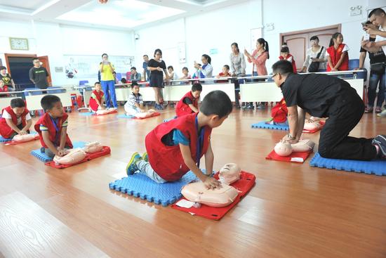 4日上午,晨報30余名小記者來到黑龍江省急救中心,參觀120急救指揮調度中心,在心肺復蘇模擬人上學習心肺復蘇技能。