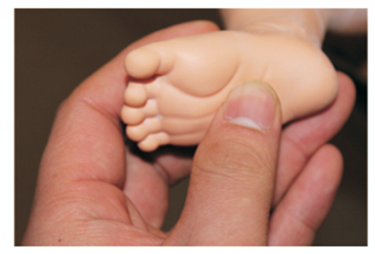6.異物吸取干凈后 ,口腔紫紺消失,拍打或彈擊足心可使新生兒模型啼哭。