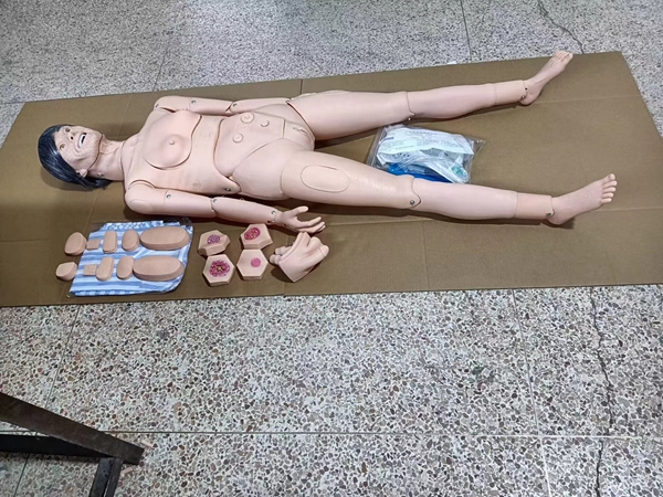 具體來說,老年護理模型可以實現多項護理功能,包括但不限于:洗頭發、洗臉、瞳孔觀察、眼耳清洗滴藥、助聽器取出和插入、口腔護理、假牙護理、氣管插管、氣管切開護理、吸痰法、氧氣吸入法、口鼻飼法、洗胃法、手臂靜脈穿刺、注射、輸液(血)、皮下和肌內注射、胸腔、骨髓、腰椎穿刺、灌腸法、導尿術、膀胱沖洗、前列腺檢查、造瘺引流術、結腸造瘺術、臀部肌肉注射等。此外,模型還通常包括無創血壓測量功能,以模擬老年人的血壓測量過程。