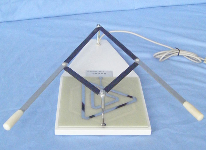 產品概述: EP714 雙臂調節器,是一種研究注意分配的技能型操作設備。被試通過雙臂的協調動作,盡可能快又準確的移動在軌跡上,完成一周所用時間及出錯次數反映了被試的注意分配及雙臂協調的能力。可用于運動感覺能力與情緒穩定性的測定,也適用于職業選擇以及操作人員雙臂協調能力以及注意分配力的鑒別。 儀器組成: 儀器由本體和圖形板組成,本體上配有連接計時計數器的輸出插座,由計時計數器記錄實驗時間及出錯次數。可選用 EP001 或 EP105 計時計數器。 EP714(A) 雙臂調節器附EP105型計時計數器 EP714(B) 雙臂調節器附EP001型計時計數器