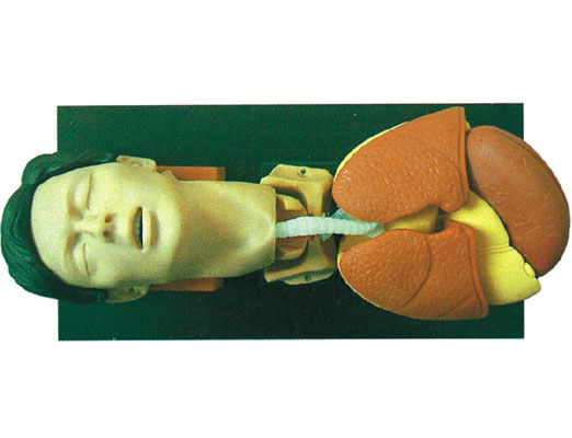 可進行經口、經鼻氣管的操作訓練,正確插入氣管,供氣雙肺膨脹;錯誤插入食道,供氣胃膨脹。